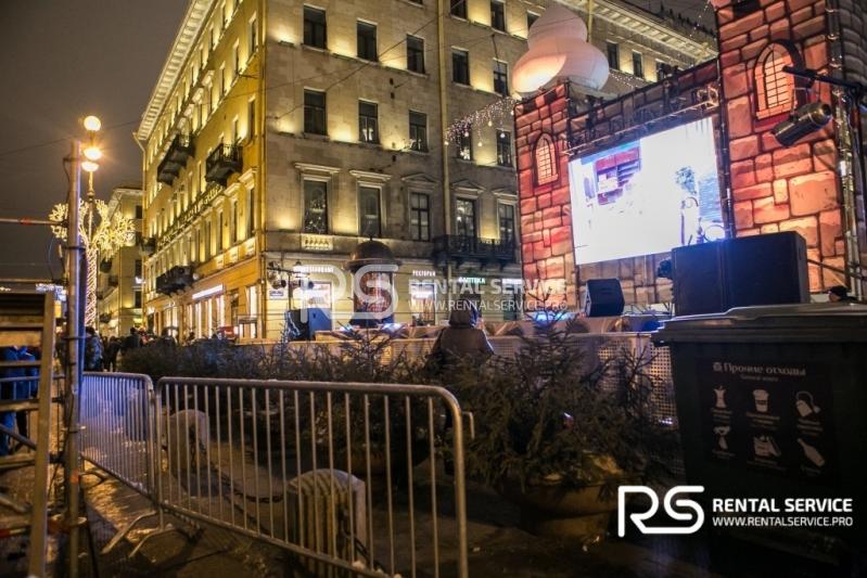 Техническое оснащение светодиодными экранами 5×3 c шагом P5, пультовыми и полное видео сопровождение на мероприятие «Празднование Новогодней Ночи 2019» на Дворцовой площади и Невском проспекте от команды Rental Service.