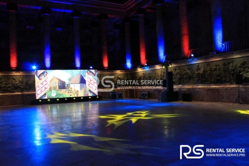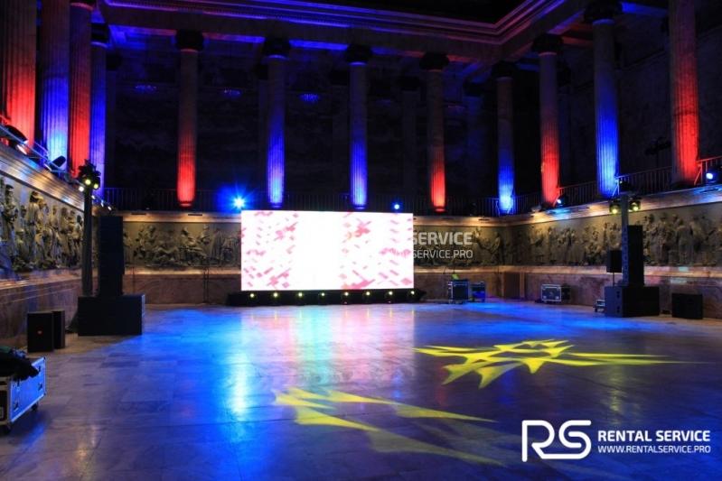Техническое оснащение мероприятия, музей "Этнографии". 8 приборов Robe 1200 Spot, 8 приборов Robe 1200 Wash, 12 приборов Sharpy Beam 230, 24 светодиодных панели LedBar 0,5 м, линейный массив TWAudio 23 кВт, мониторы ElectroVoice ELX115P, светодиодный экран indoor/outdoor на ногах 7x3 c шагом P6, europodium Guil 8x1 м под экран. Работа выполнена под ключ командой Rental Service.