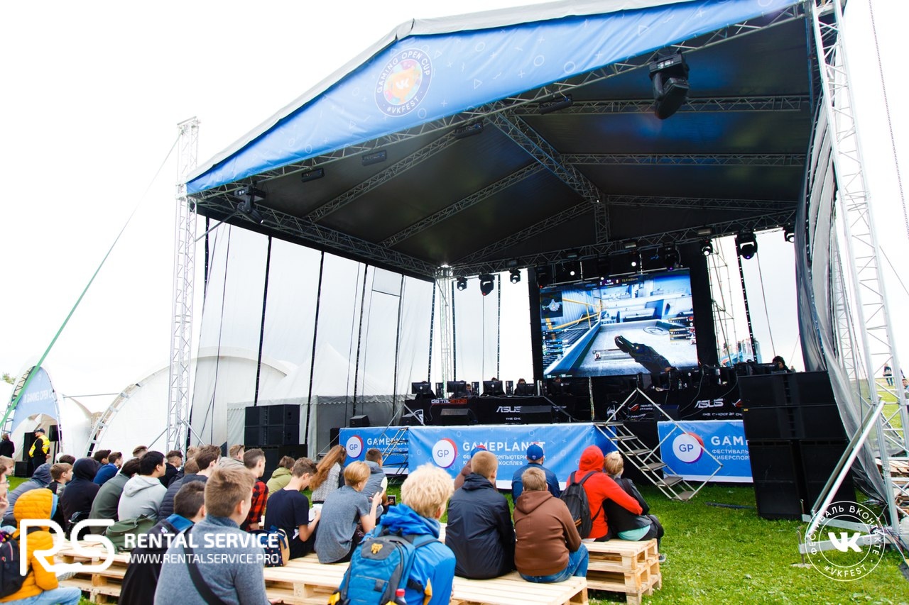 -Сценический комплекс 12X10, сценический подиум 12X6, башня под экран Layher - 6x4, пультовая Satgekraft 7x5, светодиодный экран с шагом P4 -6x3, акустическая система 20 кВт с микрофонами и пультом на основе системы Rencus Heinz, 8-м вращающихся голов Robe 1200 Spot, 10 заливных приборов LedBar, 10 вращающихся голов Sharpy Beam, 2 дым машины Antari Z1500i - для зоны "Gaming Open Cup";