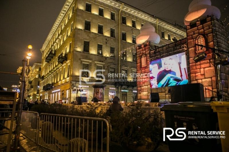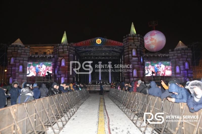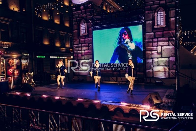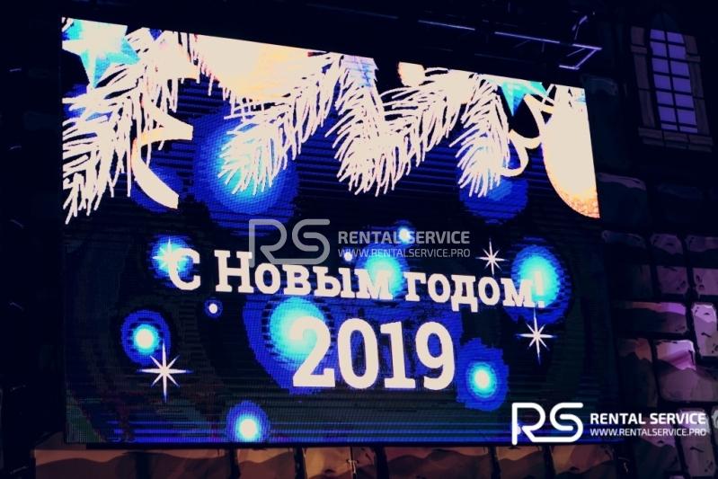 Техническое оснащение светодиодными экранами 5×3 c шагом P5, пультовыми и полное видео сопровождение на мероприятие «Празднование Новогодней Ночи 2019» на Дворцовой площади и Невском проспекте от команды Rental Service.