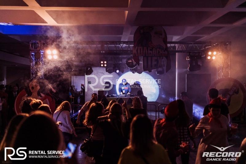 Техническое оснащение мероприятия от радио Record "Супердискотека 90-х". Танцпол "Колбасный ЦЕХ" и несколько зон backstage от команды Rental Service.