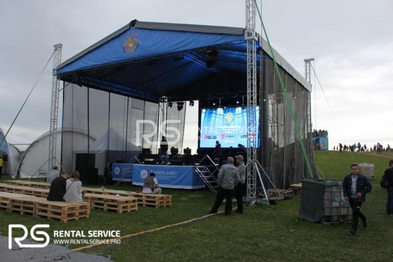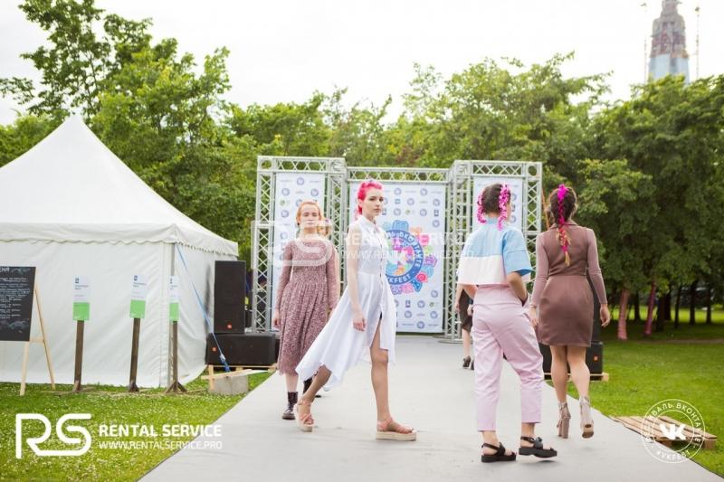- Сценический подиум 14x3 c конструкцией из ферм, 6-ть кВт звука Jbl MRX c микрофонами и пультом, пультовой шатер - для зоны "Мода";
