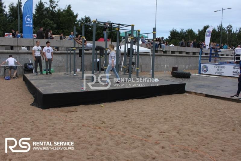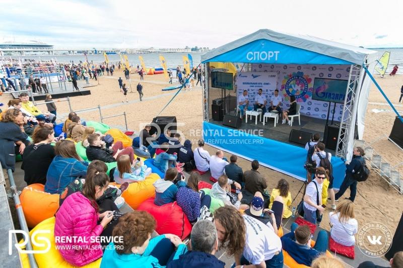 - Сценический комплекс 6X4, трибуна layher 10x5, 8-м кВт звука Jbl Srx c микрофонами и пультом, пультовой шатер, 2 плазменные панели 50" и 2 подиума 6x6 и 8x7 - для зоны "Спорт";