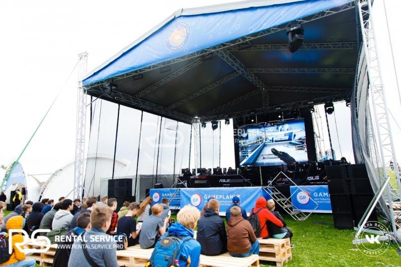 - Сценический комплекс 12X10, сценический подиум 12X6, башня под экран Layher - 6x4, пультовая Satgekraft 7x5, светодиодный экран с шагом P4 -6x3, акустическая система 20 кВт с микрофонами и пультом на основе системы Rencus Heinz, 8-м вращающихся голов Robe 1200 Spot, 10 заливных приборов LedBar, 10 вращающихся голов Sharpy Beam, 2 дым машины Antari Z1500i - для зоны "Gaming Open Cup";