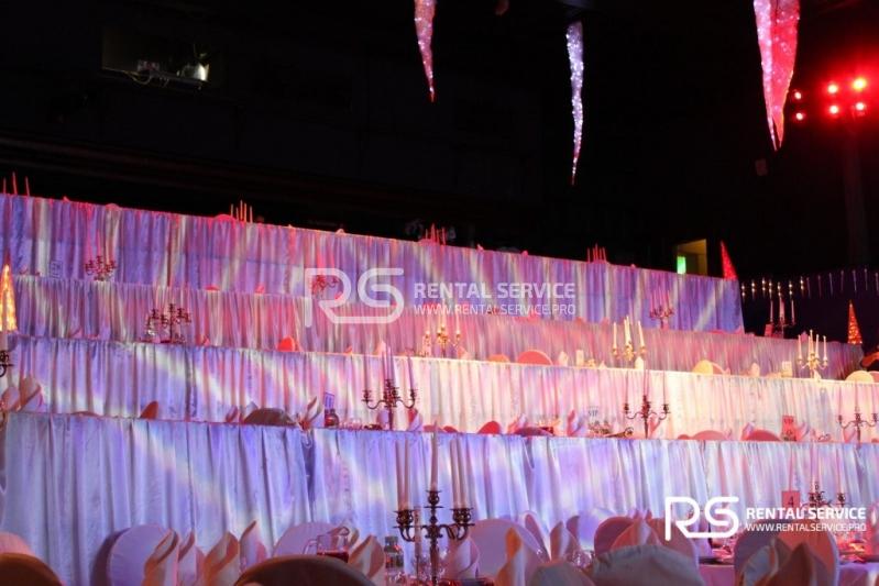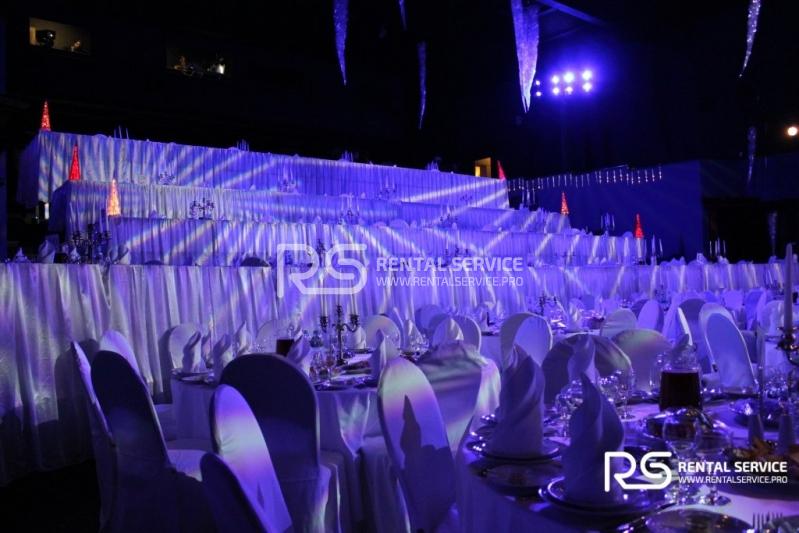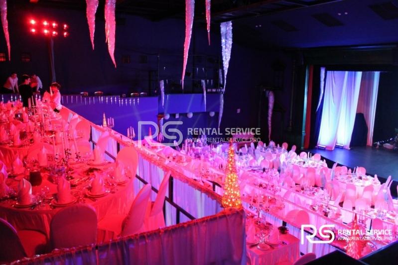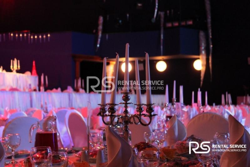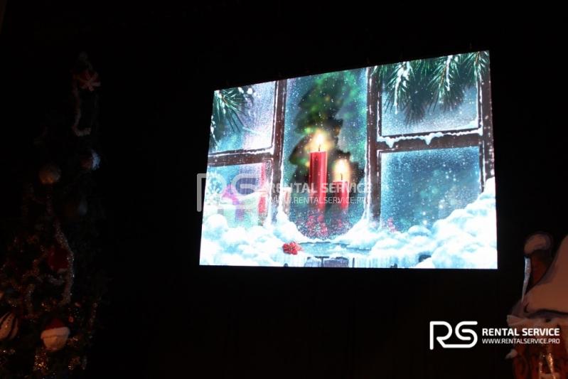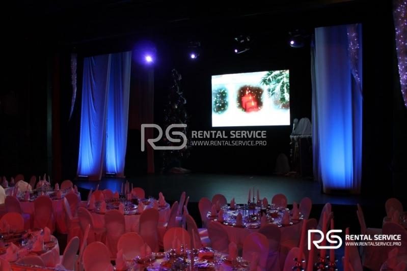 Техническое оснащение корпоративного мероприятия от команды Rental Service. Светодиодный экран 4x3 с шагом P6, работа видеоинженера, интерьерная подсветка зала и welcome зоны, комплексное световое оформление мероприятия.