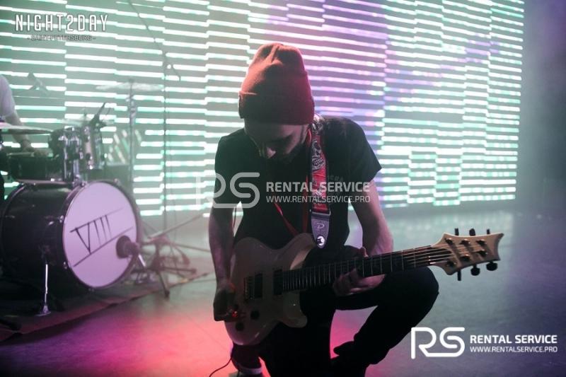 15 кВт звука TW audio, мониторы ElectroVoice ELX, радиомикрофоны Shure ULXP, комплект беклайна: Yamaha Stage Custom, Fender Twin Reverb, Ampeg SVT3Pro +410HE, комплект DJ оборудования 2xPioneer CDJ2000 nexus+DJM900Nexus