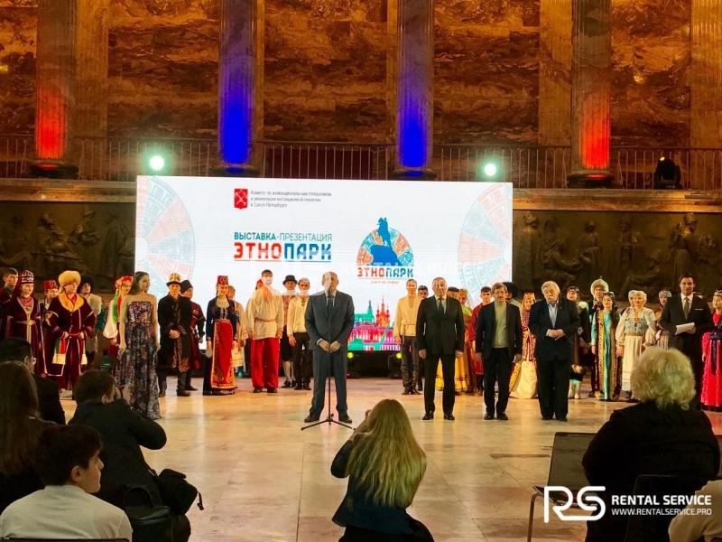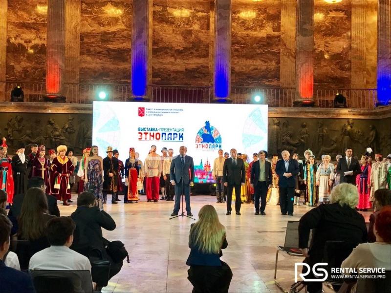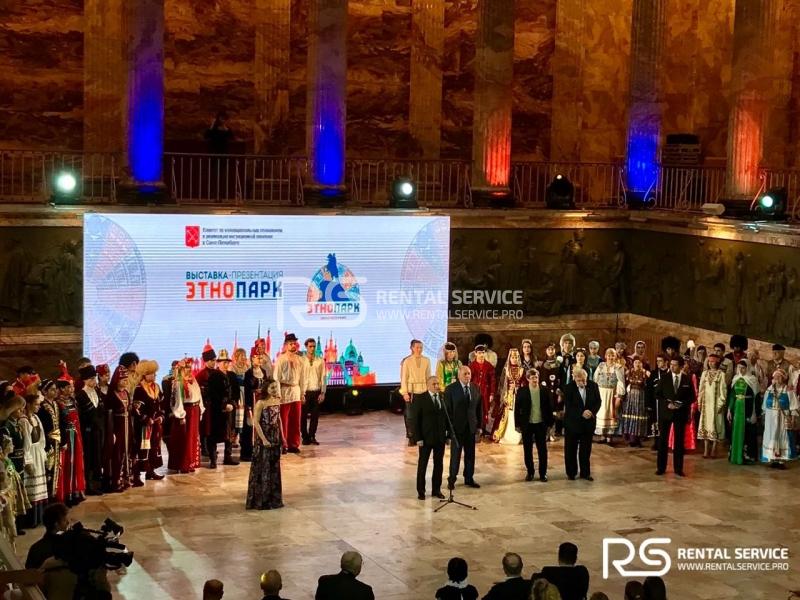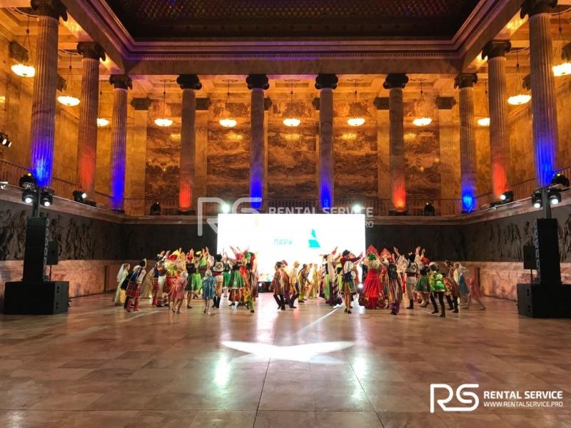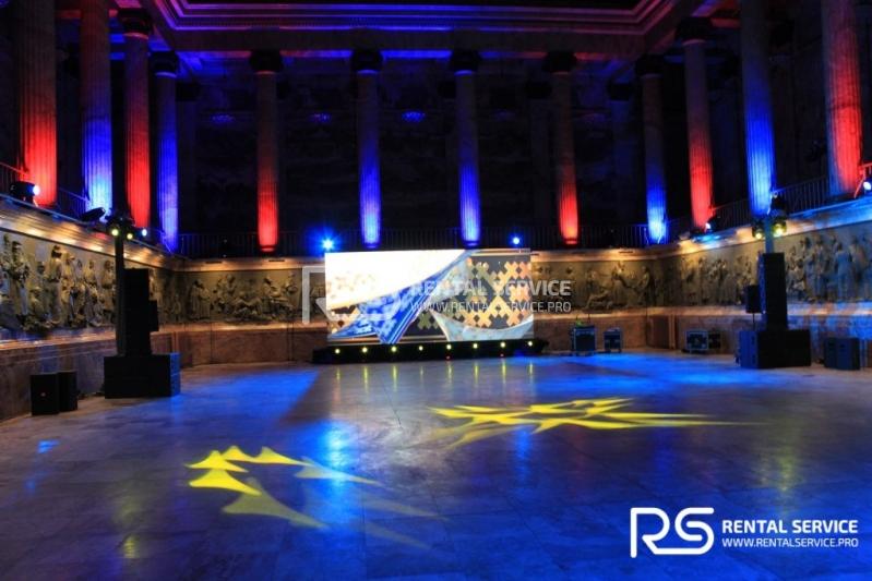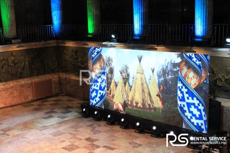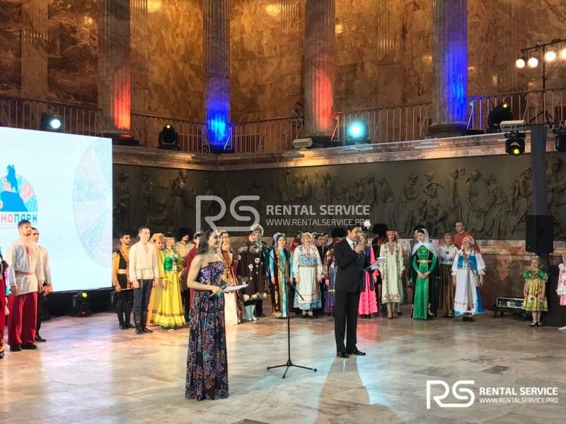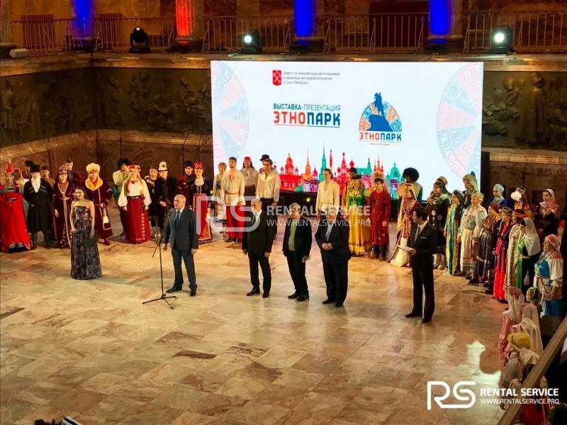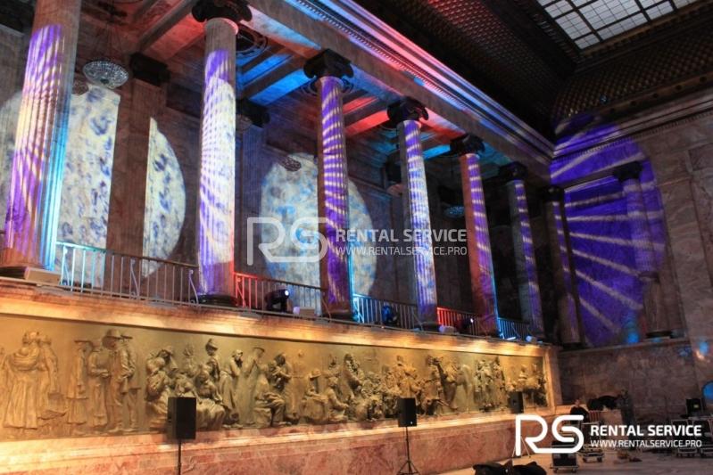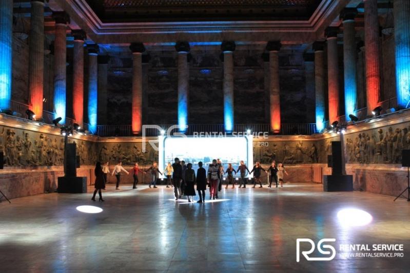 Техническое оснащение мероприятия, музей "Этнографии". 8 приборов Robe 1200 Spot, 8 приборов Robe 1200 Wash, 12 приборов Sharpy Beam 230, 24 светодиодных панели LedBar 0,5 м, линейный массив TWAudio 23 кВт, мониторы ElectroVoice ELX115P, светодиодный экран indoor/outdoor на ногах 7x3 c шагом P6, europodium Guil 8x1 м под экран. Работа выполнена под ключ командой Rental Service.