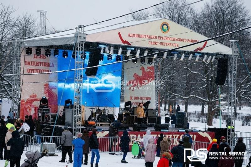 Техническое оснащение сценическим, звуковым, световым, видео оборудованием праздника в Красносельском районе, комплексное техническое обеспечение от команды Rental Service.